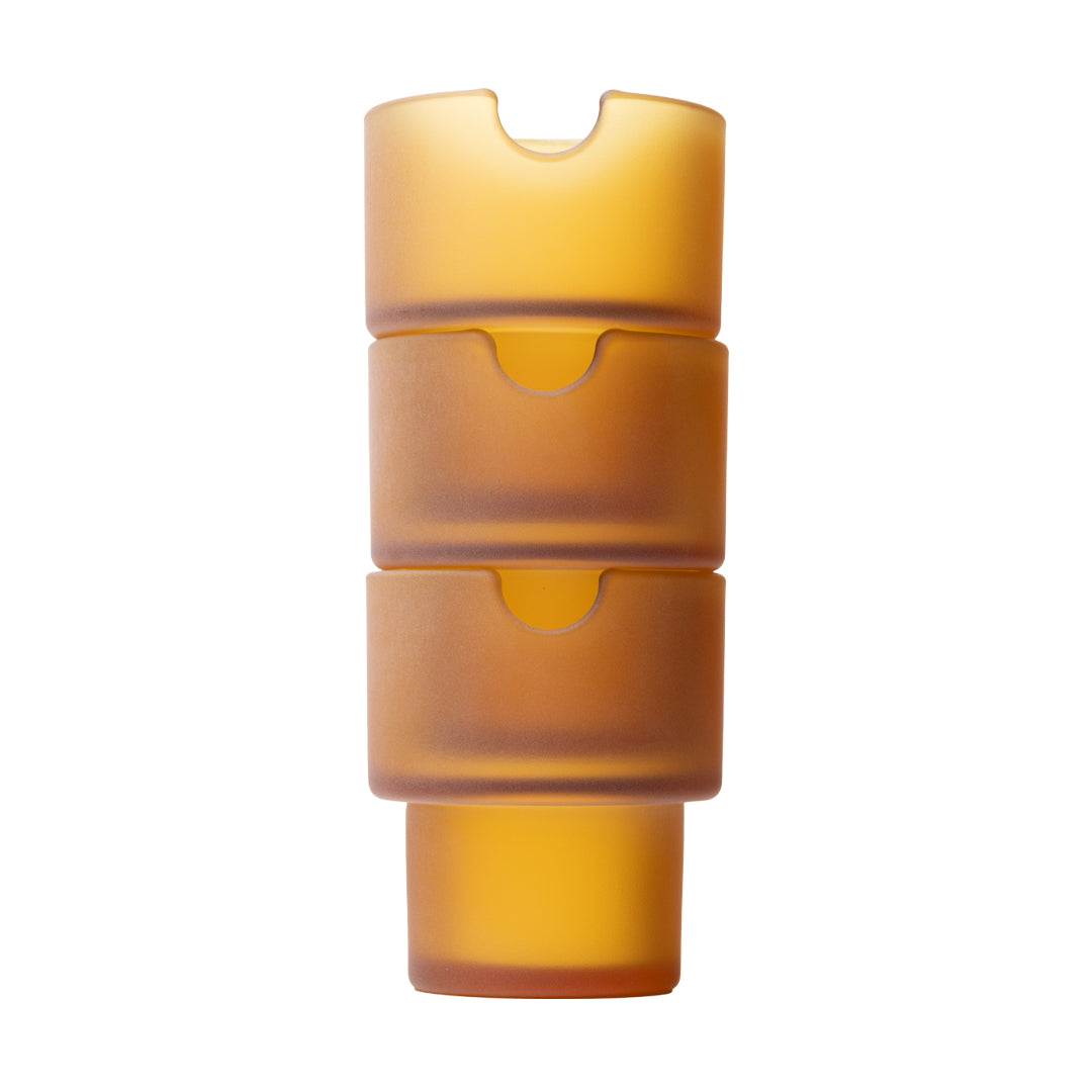 To keep the glass looking pristine, wipe the exterior with a soft cloth and a mild glass cleaner or soapy water. The interior’s smooth surface resists buildup and cleans quickly with a gentle rinse. Since the pieces are handmade borosilicate glass, handle with care to preserve the sandblasted texture and avoid harsh abrasives. When stacking, align grooves and edges to ensure stability on countertops, desks, or shelves.