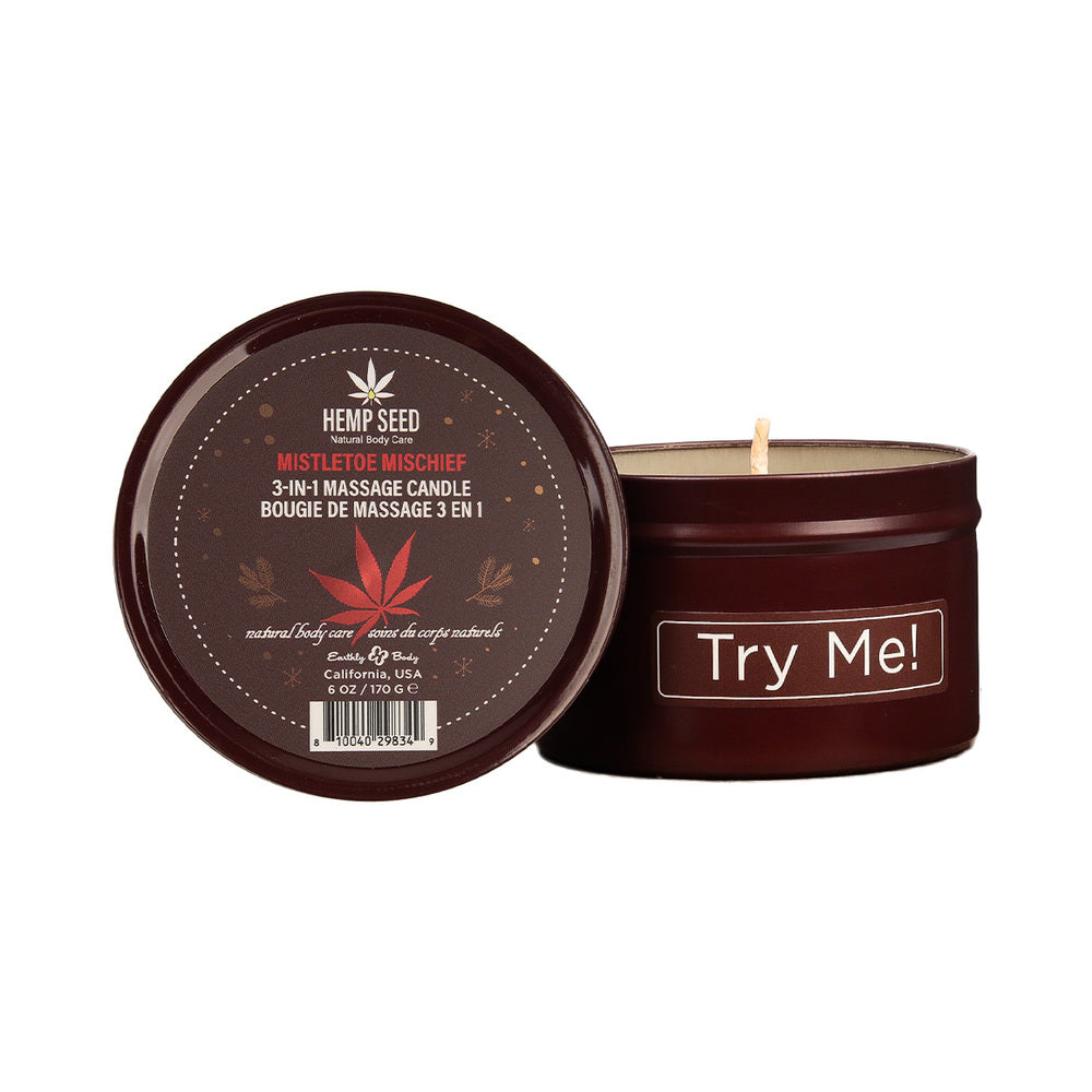 Earthly Body Hemp Seed Holiday Candle Pre Pack: Mistletoe Mischief, Tinsel Tease, Yule Be Begging