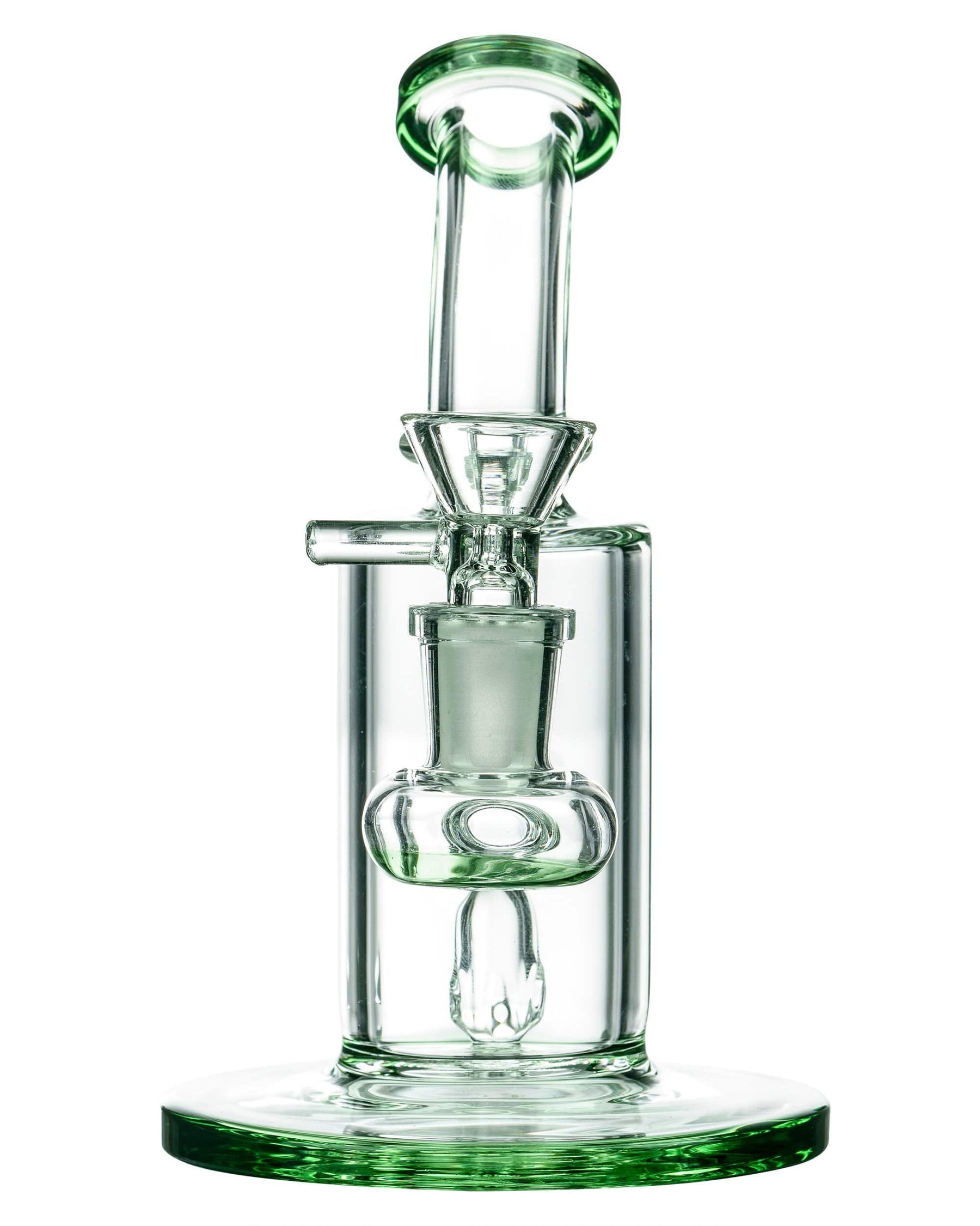 Crafted from high-quality borosilicate glass in California and featuring green accents on the base and mouthpiece, this Glassic "Sidekick" Dab Rig is the ideal crime-fighting companion. Its compact size allows for easy concealment and transportation, while its reinforced 14mm female dewars joint and naturally aspirated percolator ensure a clean and smooth smoking experience. Whether you choose the angled quartz banger nail or the bowl for weed, this handblown piece stands tall at 6.5 inches to battle any danger that comes its way.
