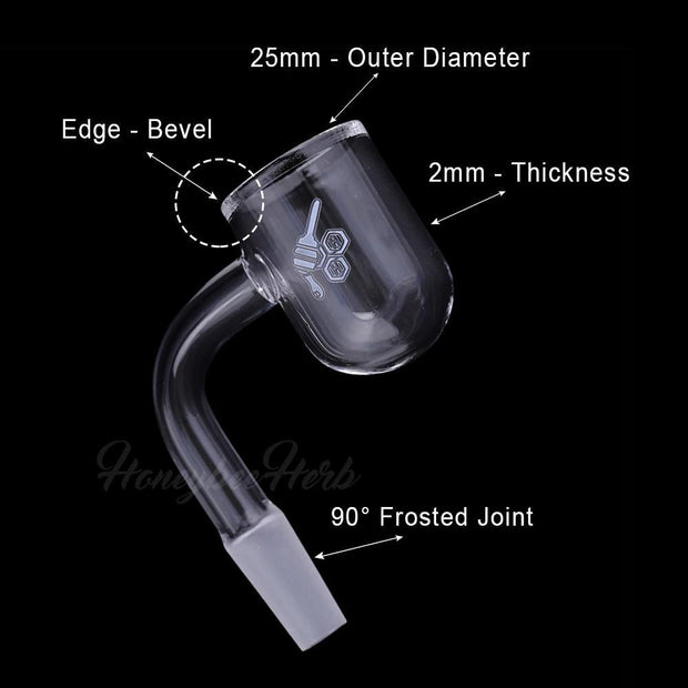 Introducing the Honey Bevel Bowl Quartz Banger - 90° Degree, a premium accessory designed for the discerning connoisseur. Crafted with precision, this bevel bowl boasts an outer diameter of 25mm and a sturdy 2mm thickness, with a sleek bevel edge for added sophistication.
